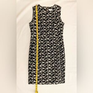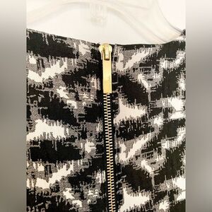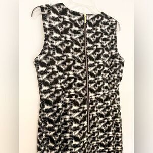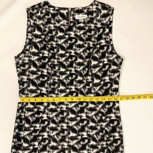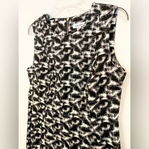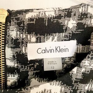 Calvin Klein elegant black and white dress features a sophisticated pattern, perfect for any occasion. Its timeless design ensures you look chic and stylish. Size 12. Stretch. Gold zipper on the back.