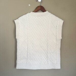 Madewell V Neck Boxy Wool Blend Cable Knit Sweater Vest Cream Size Small