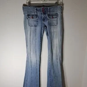 Hollister Company Vintage Y2K Junior Jeans Denim Size 3 Stretch Raw Hem Boot Cut