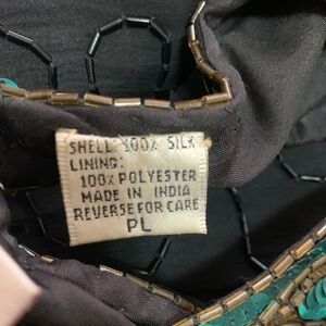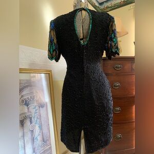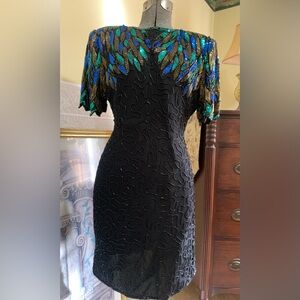 Vintage Beaded Dress Sequin Peacock, 100% Silk Cocktail Mini Size Petite Large