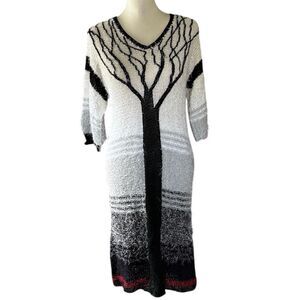Wearable art, slight damage in photo. Beautiful in person, must wear slip beneath. Crochet or knitted. Some stretch, maxi.