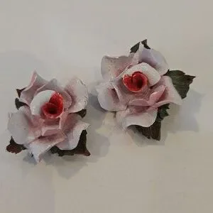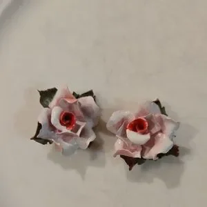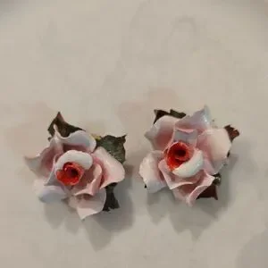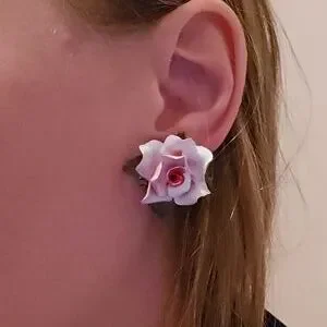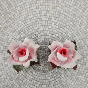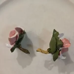 Not Oscar de la Renta brand. Charming rose-shaped vintage clip earrings. Features pink petals with red centers. Perfect for adding a floral touch. perfect for chic picnics, garden party, wedding, trips to the English countryside.
