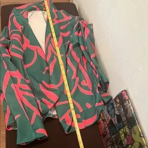 Elevate your wardrobe with this chic green and pink jacket. Perfect for adding a pop of color to any outfit.