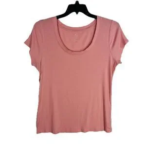 A New Day 2X Pink Ribbed Short Sleeve Scoop Neck Tee T-Shirt Plus Size Basic
