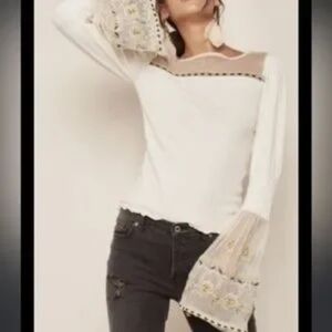 Free People Embroidered Bell Sleeve Boho Mesh Cotton Festival M