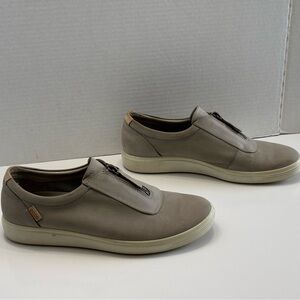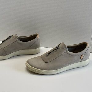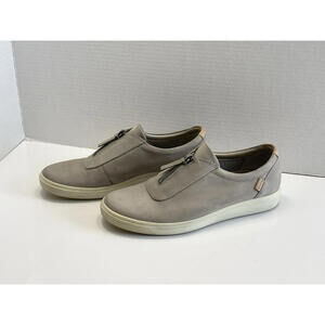 Ecco Soft 7 Shoes Women's Size US 9 / EU 40 Gray Nubuck Leather Zip Up Low Top Comfort Sneakers.