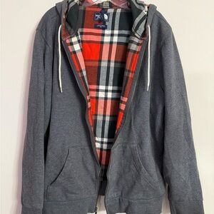 THE NORTH FACE Hoodie Men's XL Gray Full Zip Red Plaid Lined Pockets