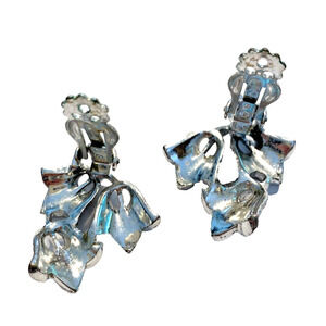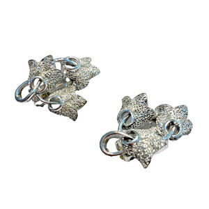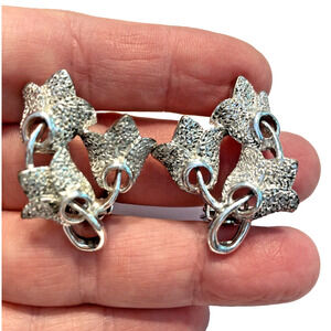 Vintage Mid Century Clip On Earrings Silver Textured Dimensional Mod Flowers