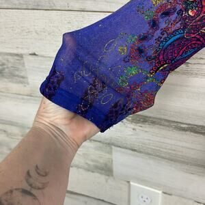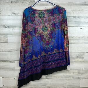 Calessa Asymmetrical Hem Colorful Boho Long Sleeve Layer Blouse Women’s Size XL