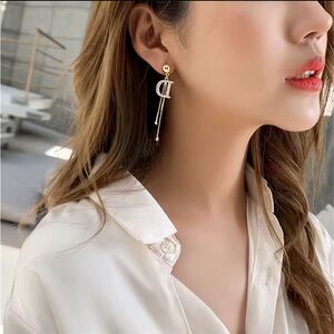 D Alphabet Gold Drop Cyrstal Dangle Earrings