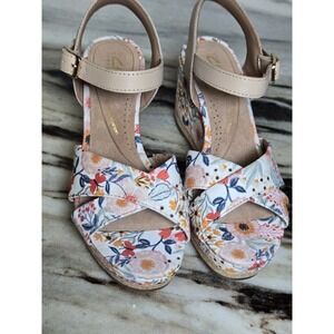 Clarks Women Shoes Size 6 Artisan x Jane "Chicly Floral" wedges.