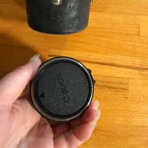 • Comes with original front and rear caps and vintage Canon leather lens case (red velvet interior).