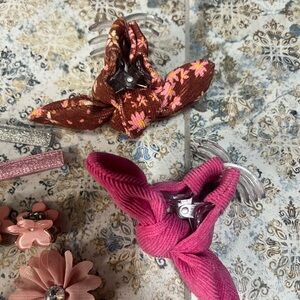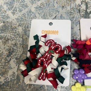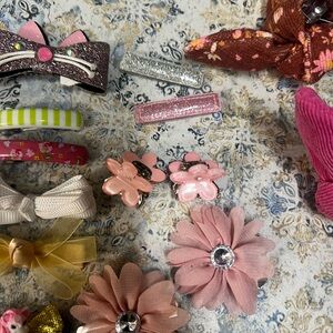 Vibrant set of hair accessories including clips and bows. Features a variety of colors and playful designs.