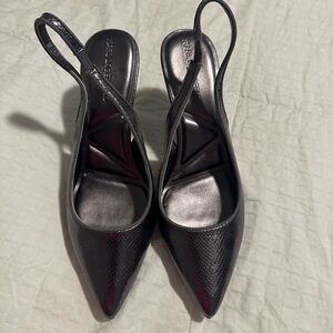 Step up your shoe game with these chic Karl Lagerfeld Paris Rosalyn slingback pumps in a versatile dark slate shade — perfect for both day and night looks. Gently used. Size 9