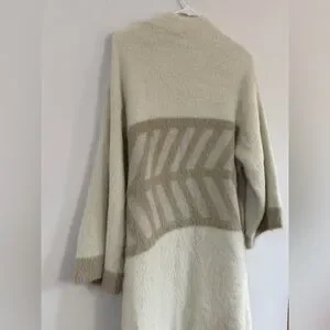 Excellent pre-owned condition with no tears, stains or flaws. Lovely long cozy cardigan from Anthropologie. Colors are ivory and beige, tan. Material is naturally very soft and fuzzy.