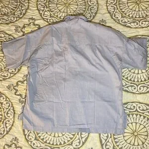 In good preowned condition. Popover style with a collar and pleat in the front. Oversized fit