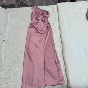BHLDN One-Shoulder Side-Slit Stretch Satin Maxi Dress. Polyester stretch satin. Invisible side zipper. Gathered detailing Side slit. Extra small. Color is Orchid Purple. Purchased at Anthropologie