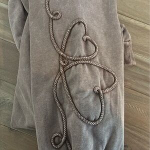 This Easel Sweatshirt is simply beautiful. the sleeves says it all with that Heart rope trim. Perfect for any occasion. Material 80% cotton 20% polyester self 95% and 5% spandex