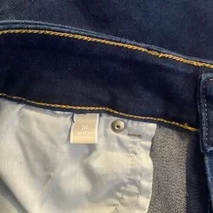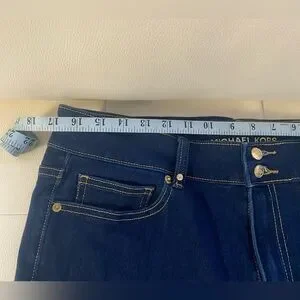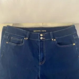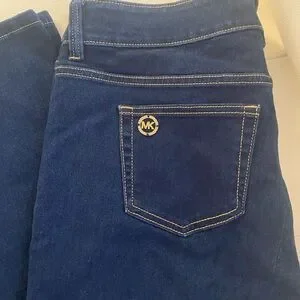 Elegant dark blue jeans with boot cut leg design. Features signature Michael Kors logo on pocket.
