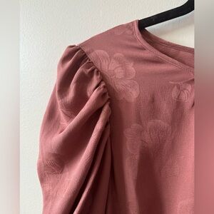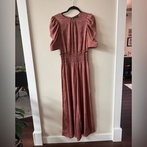 ANTHROPOLOGIE • CURRENT AIR Mauve Smocked Floral Jacquard Jumpsuit Size Small