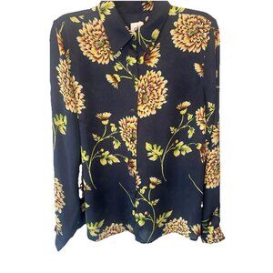 Cabi Daisy Floral Sheer Button Down Top Medium Boho Indie Peasant Festival