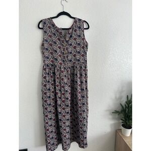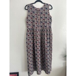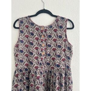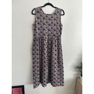 Natural Life Floral Overall Cotton Midi Dress Button Front Waist Cotton M Modest