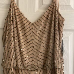 STUNNING NWT Adrianna Papell Dress Taupe & Pink beaded flapper style Cocktail dress