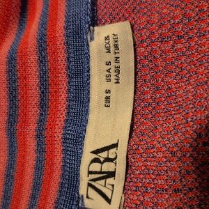 Zara women's size Small short sleeve sweater blue pink & red geometric design