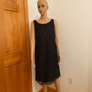 Beautiful Ralph Lauren Womens Black Sequined Cocktail Shift Dress 16
