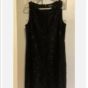 Ralph Lauren Black Sequined Cocktail Dress 16