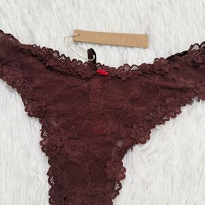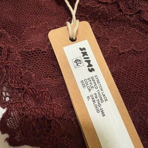 BNWT Women SKIMS Stretch Lace Dipped Thong in Oxblood Size Extra Large