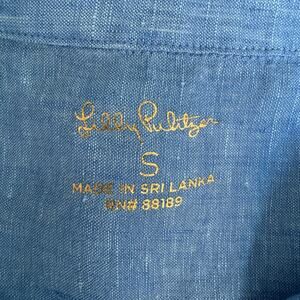 LILLY PULITZER Shirt Womens S Sea View Beckon Blue 100% Linen Coastal Vacation