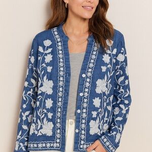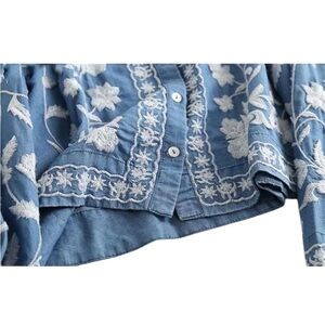 Bohemian Blue Embroidered Long Sleeve Top Jacket M