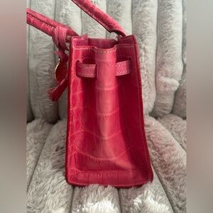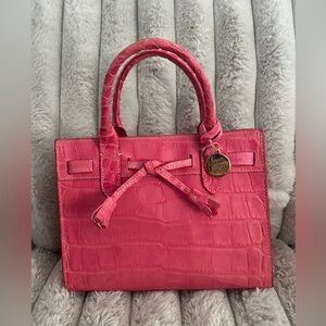 Designer handbag • Italian leather bag • Croc embossed purse • Luxury mini tote • Structured satchel • Pink designer bag • Classic American designer • Everyday luxury