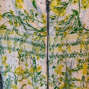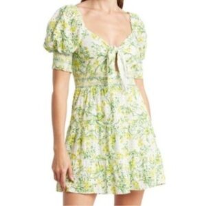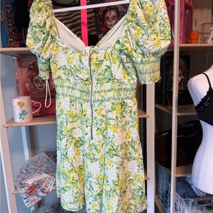 Alice + Olivia . Measurements are 17 1/2 ptp. 14 inch waist and from stretchy waist part to length is 17 inches. Embrace elegance with this floral puff sleeve mini dress. Perfect for any occasion, this dress features a charming floral pattern in green and yellow hues. The puff sleeves add a touch of sophistication, making it a must-have for your wardrobe. NWOT . Callout is the brand Tag is cut out as well as size tag. I’ve measured so check your measurements. No returns, refunds, and or regrets 💐