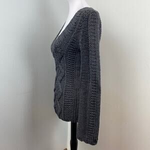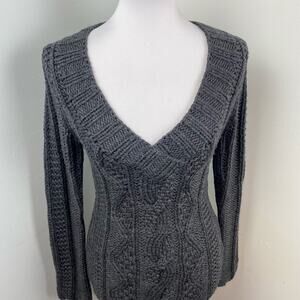 Anthropologie Sleeping on Snow Gray Wool Cable Knit Scoop Neck Sweater Medium