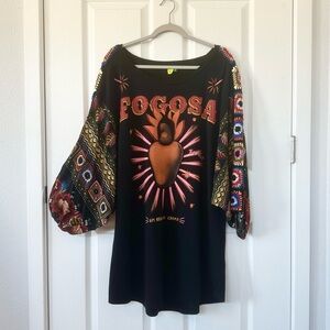 Label reads “P” which means small petite but this measures like a large & is meant to be oversized. Please refer to measurements shown in photos! This dress hits right above the knee on someone 5’5”