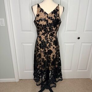 Dress the Population Black Sequin Lace Fit & Flare Midi Dress Size Medium