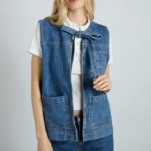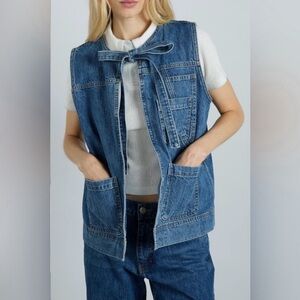 NWOT Damson Madder Milly Tie Front Denim Vest Vintage Blue Jean Size US 2/UK 6
