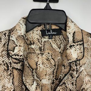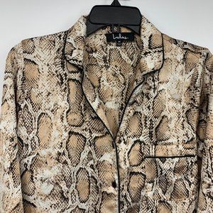 Lulus Pajama Style Top Womens Size Medium Snake Print Satin Rhea Button Down Long Sleeve. New without tags.Chest: 19.5"
