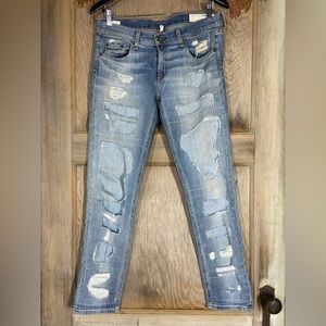 Rag & Bone Dre Distressed Boyfriend Jeans – Low‑Rise Light Wash Denim - Sz 27