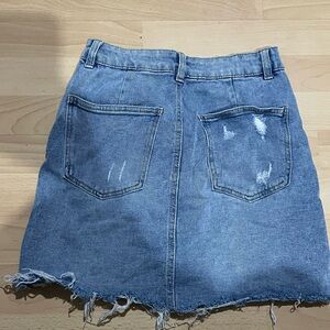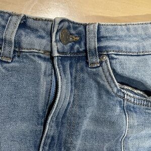 Chic light blue denim with subtle fraying. Perfect for everyday style.