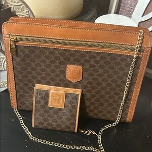 Celine Brown and Tan Crossbody Bag set with Chain and matching wallet