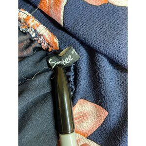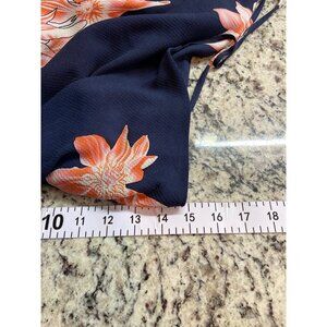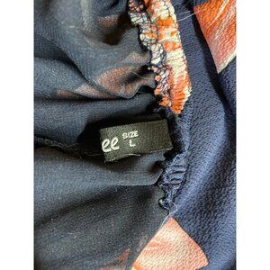Simplee Halter Maxi Dress Y2K L Blue Floral Low VNeck Crisscross Back High Slit