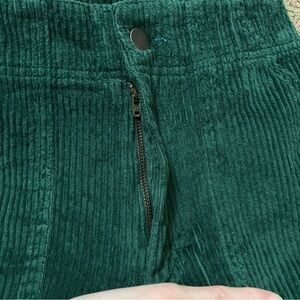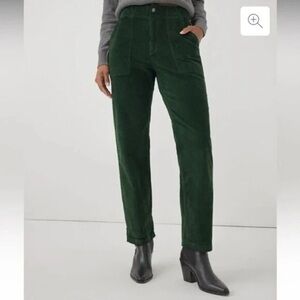 Pact classic wide wale corduroy straight leg ankle pants. Super soft wide wale corduroy. Dark forest, emerald green. Utility style patch pockets in front. Comfortable, stretchy elastic waistband. Zip fly, button closure. Classic, 90s style. Organic cotton. Size XS.