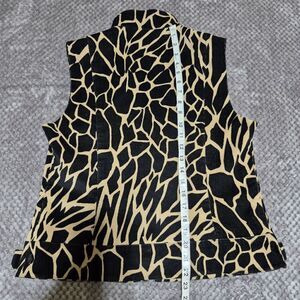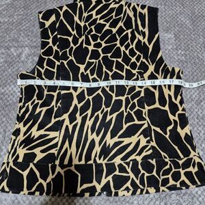 Carlisle Vest Animal Print Women US 10 Black Camel Full Zip Front Western Boho Small Front Pockets 98% Cotton 2% Spandex.