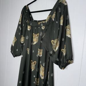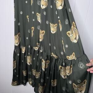 BULULU Resort Wear Women’s Leopard Cat Print Maxi Dress Green Dull Satin S/M