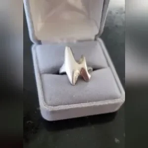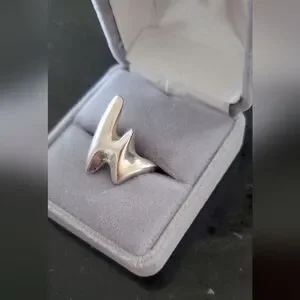 Stylish silver ring with a lightning bolt design. Perfect for adding a unique touch to any outfit.