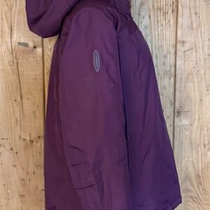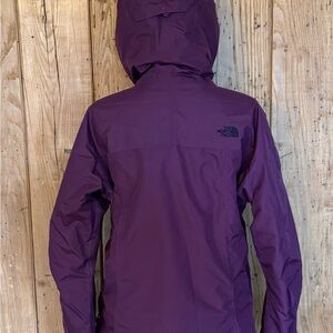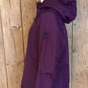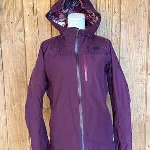 Preowned The North Face Summit Series HyVent Alpha jacket in womens size Large. Burgundy color with full zip front and hood. Gently used and in great condition with normal light wear.