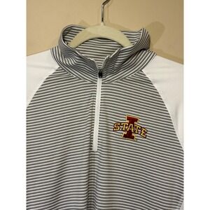 Cutter Buck Iowa State ISU Quarter Zip Pullover Gray White Striped Large Womens